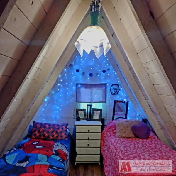 Chalet en una hermosa zona Residencial de la Sierra de los Padres, rodeado de mucho verde y muy arbolado. Consta de Living-Comedor con Salamandra tipo Rusa hermetica, con vidrio, Cocina con Barra desayunadora hacia el Living, 1 Baño, 1 Dormitorio amplio y otro en la planta alta. Los ventanales son de vidriado doble, estilo Bow windows y las paredes son de ladrillo hueco de 20 con camara de aire, haciendo un espesor de 40 cm. Carpinteria de aluminio y el techo de Zinc-Aluminio. Posee una Piscina de 3x5 Mts. Tiene los servicios de Luz y Agua. El caño trocal del Gas pasa por el frente y puede alimentar la propiedad sin problemas, en este momento estan conectados 2 Cilindros de 45 Kg. cada uno. Muy buen estado general!